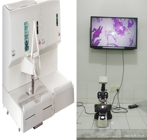 • A separate histopathology section with tissue processing and slide preparation equipment.