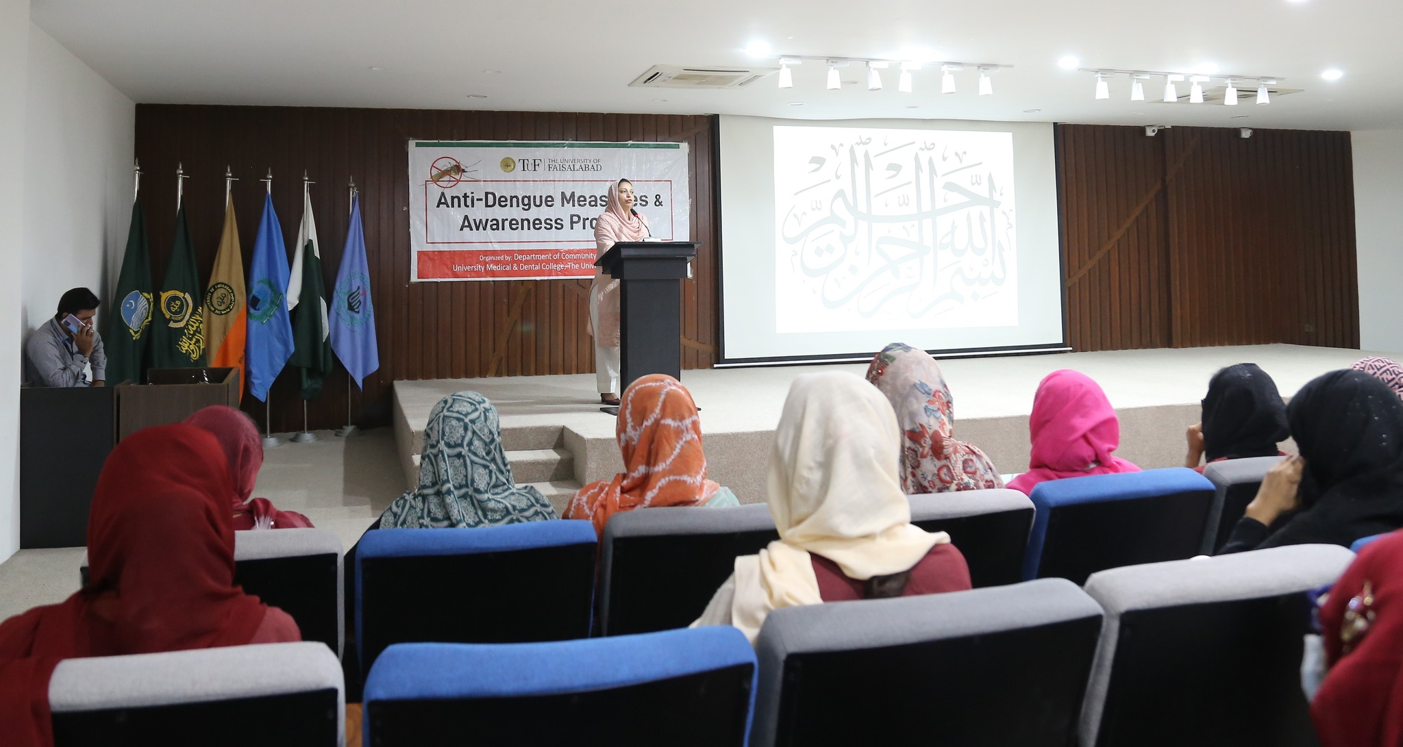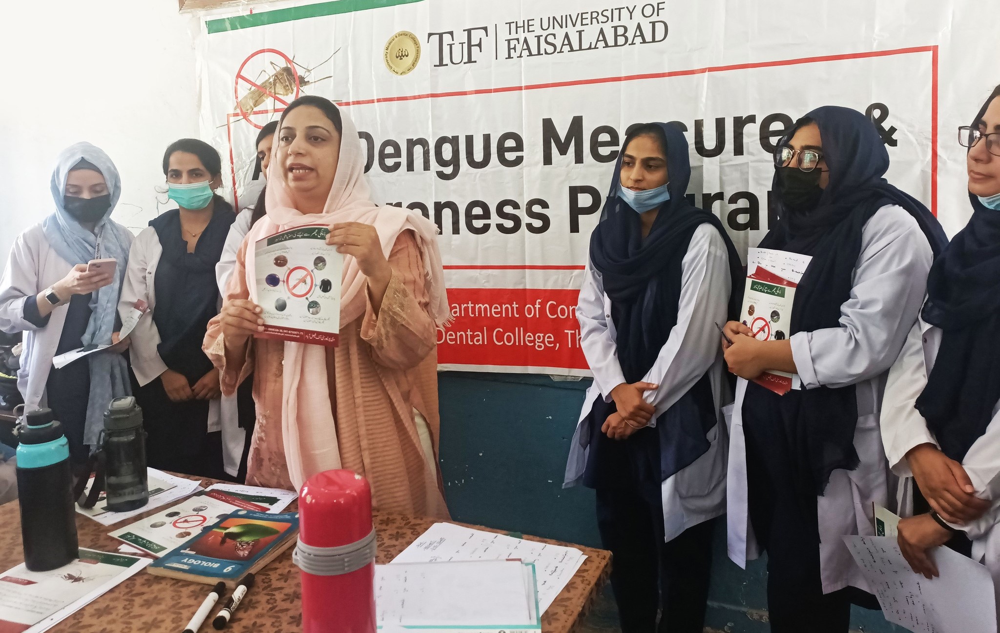 Dengue fever is a vector borne disease spread by the bite of the mosquito infected with the dengue Virus. Dengue is now endemic in Pakistan and Monsoon Season is a time when maximum number of cases are reported every year in Pakistan. To join hand with the District Government of Faisalabad, Department of Community Medicine, UMDC observed “Dengue Awareness Week” from August 22 to August 27, 2022.