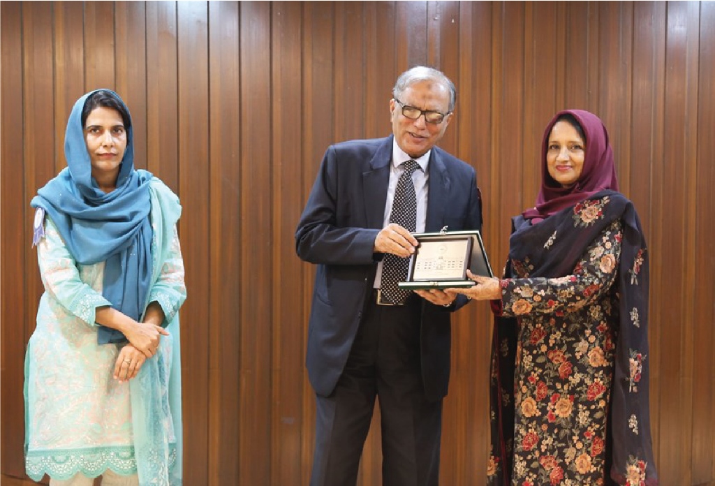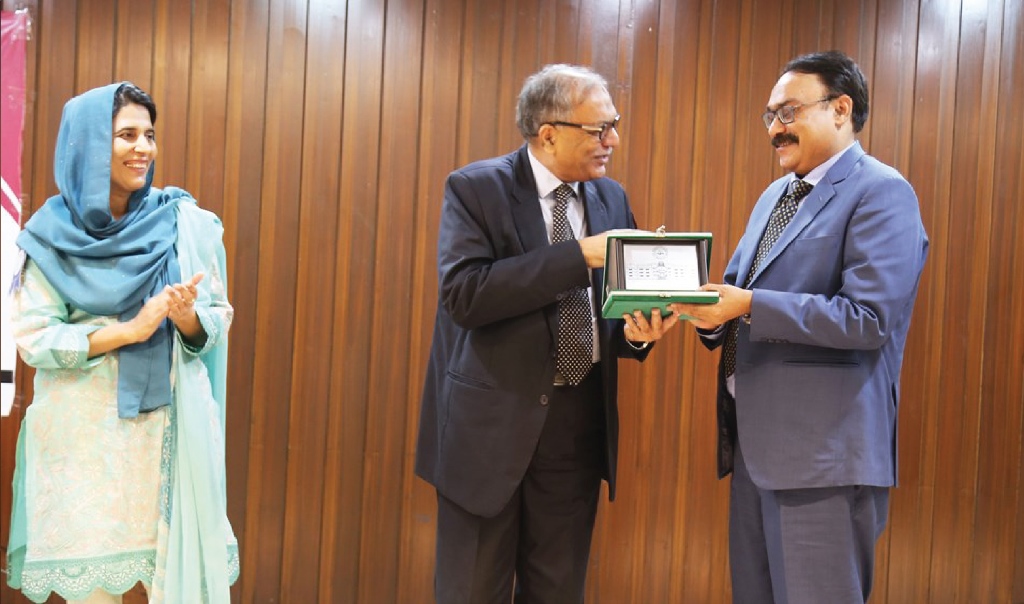 Prof Dr Khaleeq ur Rehman presenting memento to guests