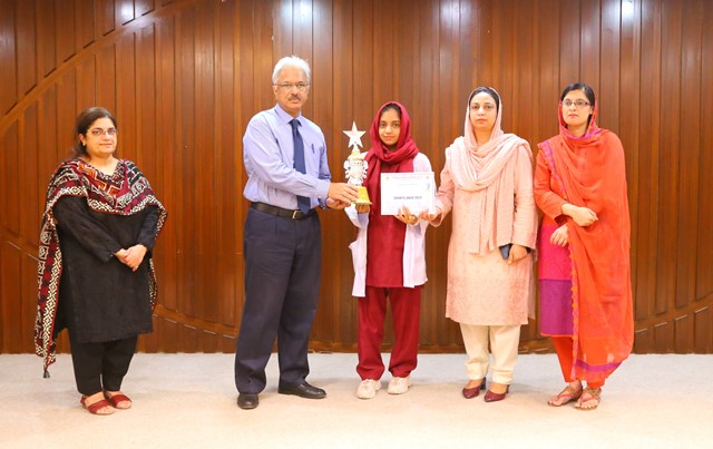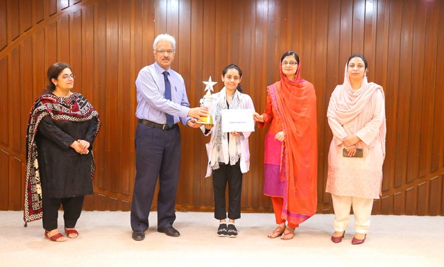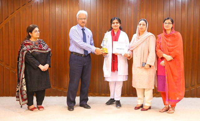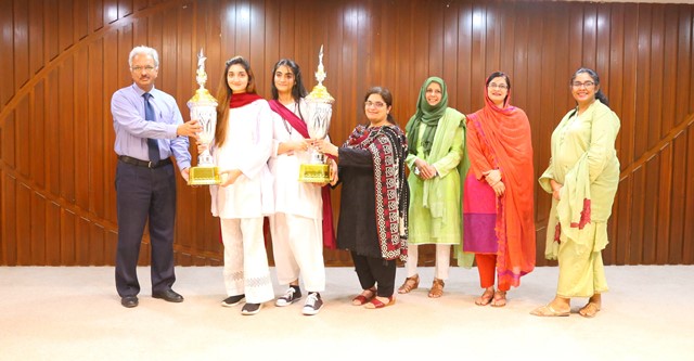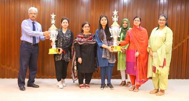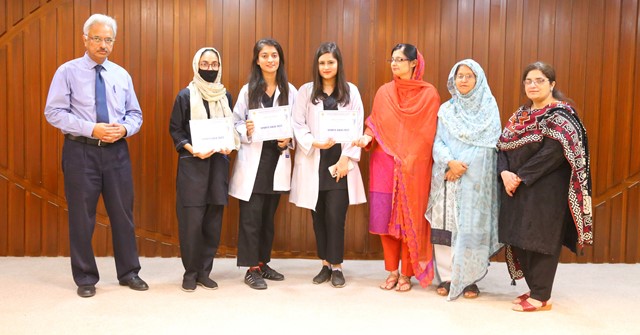 Students receiving certificates & trophies from Prof Dr Aamir Ali Choudhry and faculty members of UMDC