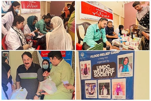 The UMDC Students Welfare Society, in collaboration with doctors from MTH, organized a medical camp in the flood-affected areas of Jhang.