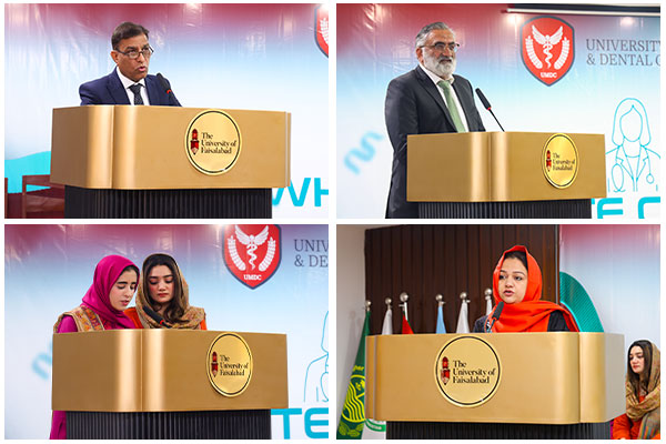 The distinguished guests at the ceremony included Prof Dr Akram Malik, Principal UMDC; Prof Dr Shirza Nadeem, Vice Principal UMDC; Prof Dr Amir Ali Chaudhary, Head of the Department of Ophthalmology, Madinah Teaching Hospital, Faisalabad, Prof Dr Aman Ullah Malik, Rector, TUF, along with esteemed faculty members of UMDC.